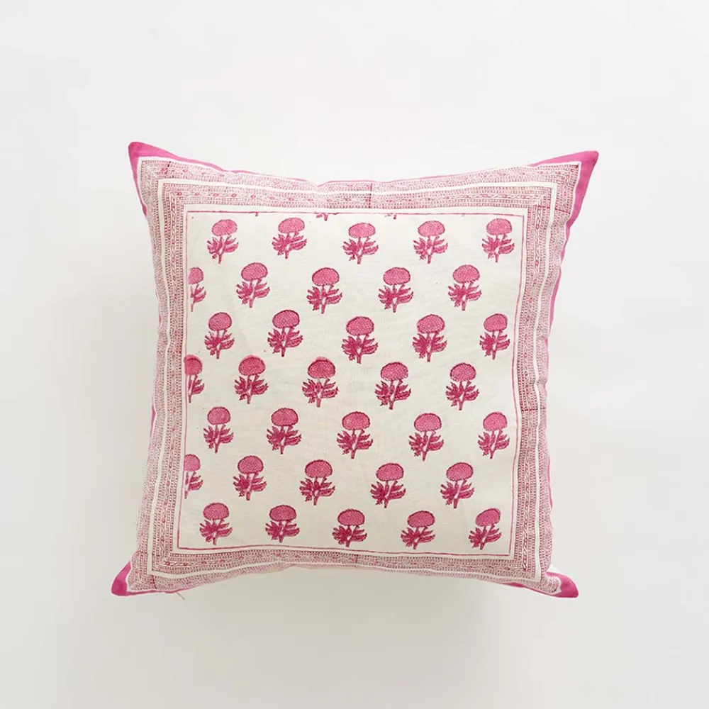 Throw this pink and white block printed pillow case on your sofa or chair for a splash of bold color and chic design. Great for spring and summer decorating or gifting for Mother’s Day!