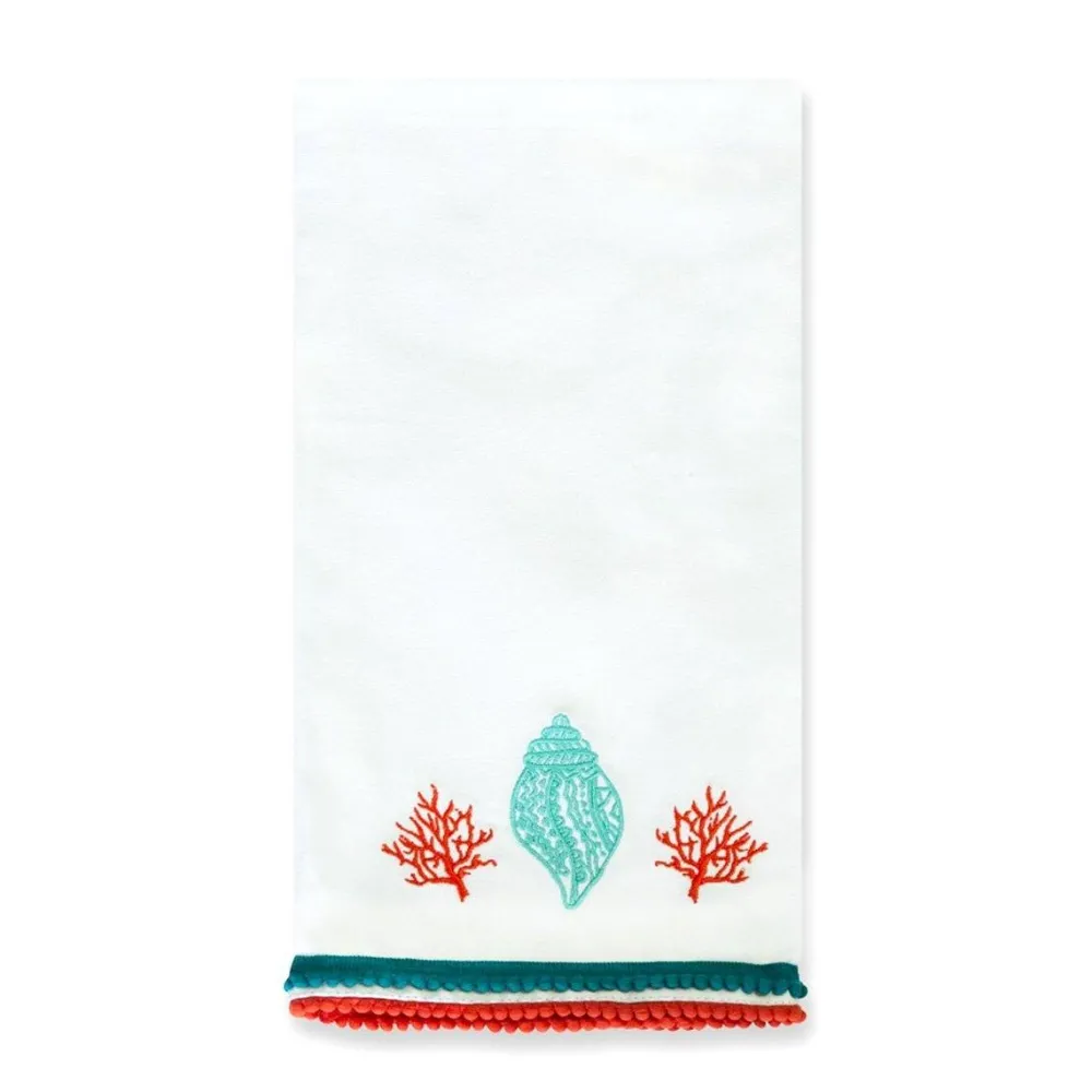 With a cool and calming color palette of teal and coral, our Lyford Embroidered Hand Towel will transport your space and guests to a seaside oasis.
