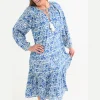 Fly away in style with our Blue Parrot Ruffle Midi Dress! This flowy mid-length dress is perfect for the fashionista who loves to make a statement. It’s sure to be a weekend wardrobe staple with its bright blue fabric, abstract white print of fun florals and parrots, and beautiful ruffle detail.