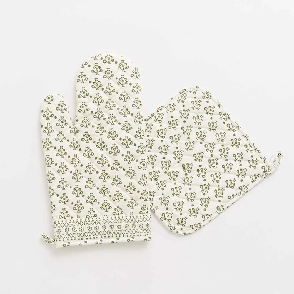 Our crowd-favorite Phlox print is reimagined in a vibrant, fern green that livens up any table with freshness. Grouped in happy clusters of three, the flowers look as though they’re swaying in a breeze, evoking the feeling of dining in a meadow or an orchard. This beautiful and unique oven mitt set is sure to cheer up your everyday kitchen, and it makes the perfect gift for your favorite cooking enthusiast.
