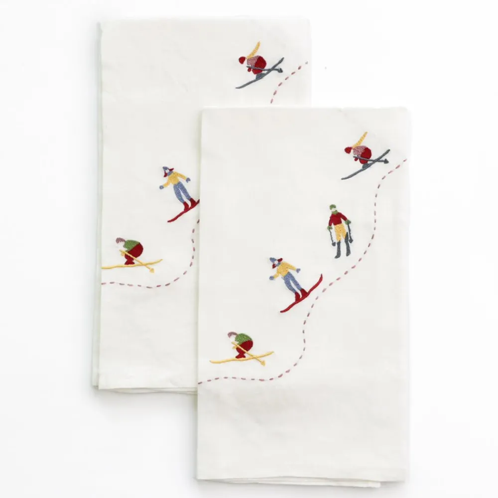 Best Pomegranate Inc Skiers Embroidered Linen Tea Towels