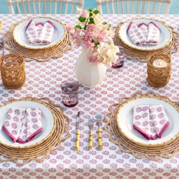 Introducing our Anika Fuchsia Napkins, a charming addition to your tableware collection. Each napkin is meticulously hand block printed with a dainty floral design, adding a touch of sophistication to your dining experience. Made from high-quality cloth, these napkins are both stylish and practical, making them ideal for any occasion.