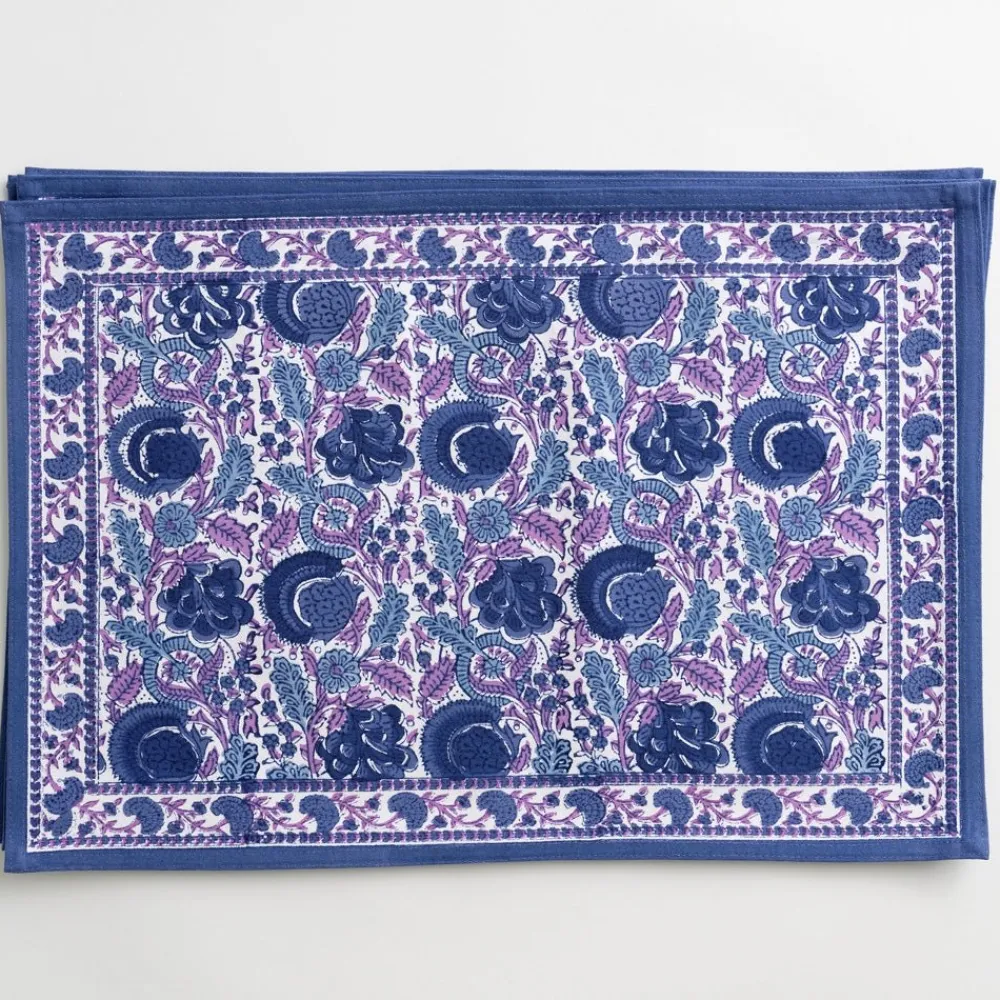 This set of four placemats offers a beautiful bohemian-style look with vivid purple & blue florals. Crafted from soft, durable cotton, these placemats are the perfect way to add a touch of elegance to any table setting. Ideal for use at any table, indoors or outdoors, they’re designed to last through any occasion and make cleanup a breeze.