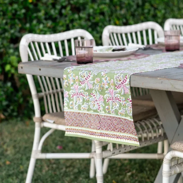 Designed to bring timeless beauty and artistry to your table, our Grecian Palm Fern & Magenta Table Runner is the perfect way to elevate special occasions, or infuse everyday moments with the unmistakable charm of the Mediterranean. Grace your table with the allure of nature’s beauty, and let this table runner be the centerpiece of unforgettable gatherings and cherished memories!