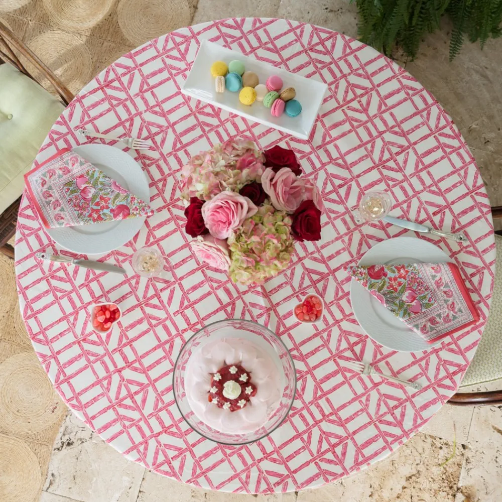 Graphic, yet sophisticated, our Bamboo Tablecloths features a geometric bamboo pattern that adds a modern, fresh touch to a Spring table setting. Available in a assorted sizes, this tablecloth is a staple for warm-weather outdoor entertaining.
