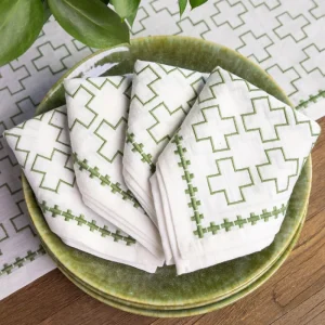 The India Hicks Home Embroidered Grand Cross napkins are embroidered in India by skilled artisans using hand-guided embroidery techniques. The beautiful cotton blend fabric has a slight stretch and resilience to it, creating a keepsake that can be brought out for your favorite dinner guests for years to come.