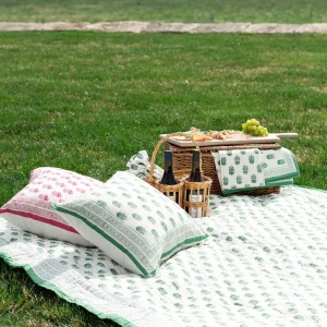 Throw this pink and white block printed pillow case on your sofa or chair for a splash of bold color and chic design. Great for spring and summer decorating or gifting for Mother’s Day!