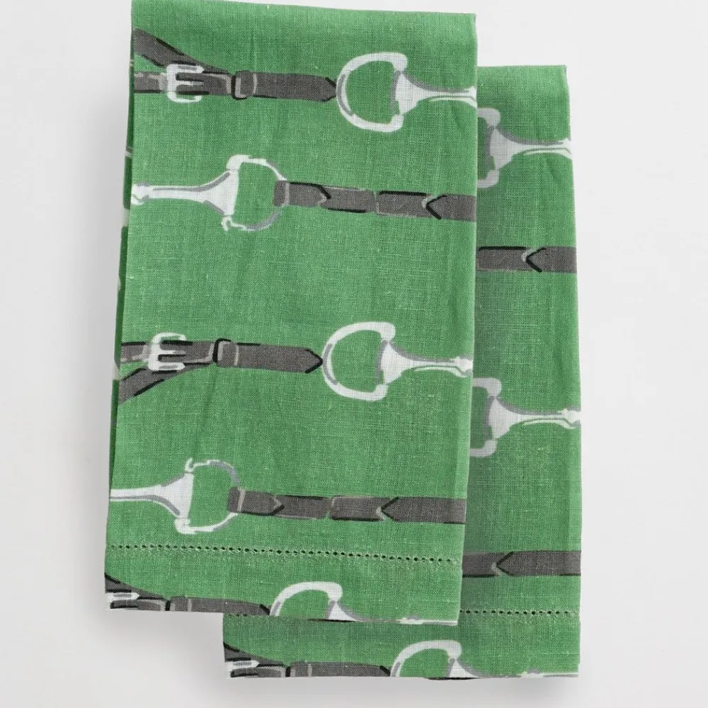Our Green Linen Snaffle & Buckle Fingertip Towels are the perfect blend of luxury and equestrian-inspired sophistication. As featured on TODAY, these exquisite linen towels feature a stunning snaffle and buckle print in classic white and black, set against a lush green background.