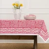 Create a dining experience that’s rich in color and style with our Pomegranate Garden Wine & Rose Tablecloth. This beautiful tablecloth features a lush, hand block printed floral pattern in vibrant shades of red, pink, and green. The intricate paisley border adds a touch of sophistication, making it perfect for enhancing your dining space for both casual meals and festive occasions. Made from 100% cotton, it’s durable, washable, and designed to inspire conversation.