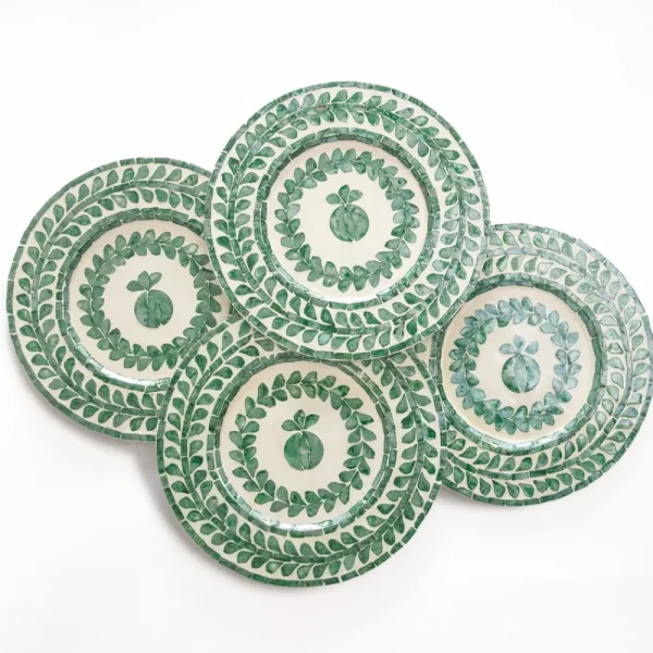 Elevate your dining experience with our Capiz Shell Pomegranate Chargers in Ivy. Sold in sets of four, these chargers feature a lush, deep green hue reminiscent of ivy leaves. Each Capiz shell is meticulously cleaned, soaked, and handcrafted, ensuring a luxurious and natural sheen. Perfect for adding a touch of elegance and nature-inspired beauty to your table settings, these chargers make every meal a special occasion.