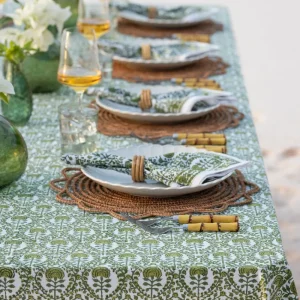 The intricate pattern of our Caroline print brings a modern, yet global look to your table. Handcrafted in India from 100% cotton, the warm hues of green add a finishing touch for relaxed dining and entertaining. Also available in Red and Blue.