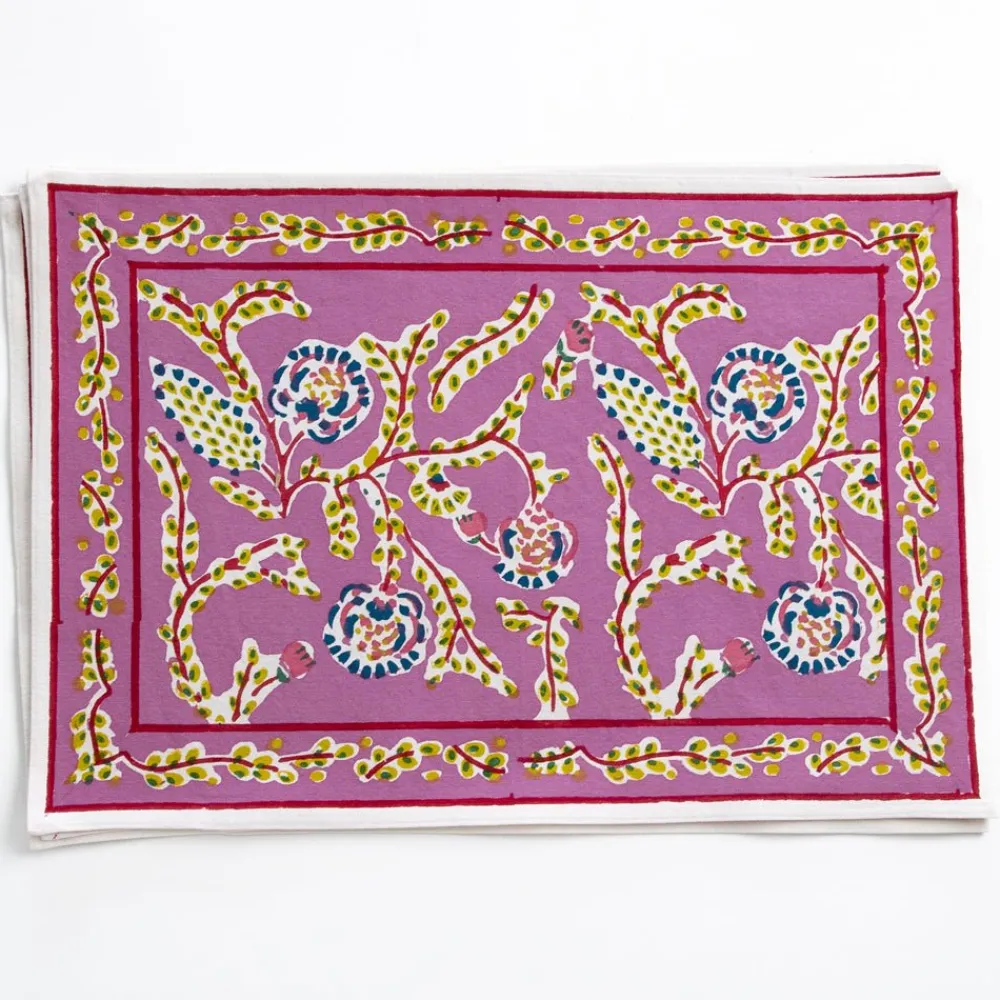 Bring the vibrant beauty of hand block printing to your dining table with our Climbing Dahlia Lilac Placemats. The intri…