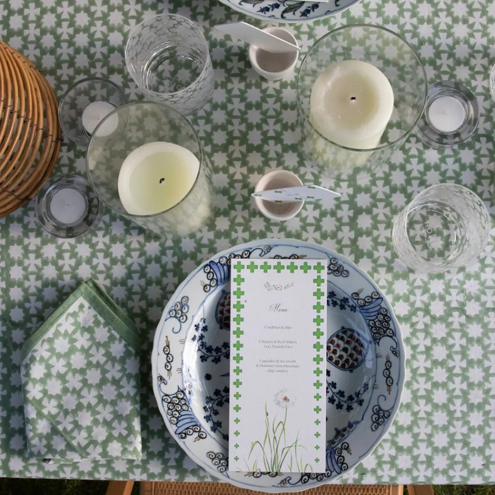 Our Cuban Cross Soft Sage Napkins showcase this pattern in a soothing green hue, adding a touch of tranquility. Crafted from high-quality, 100% cotton, these napkins offer both softness and durability.